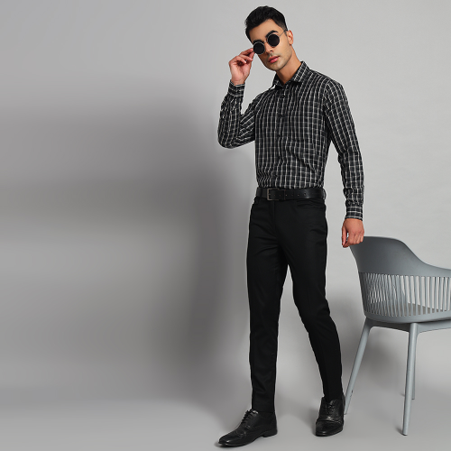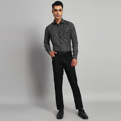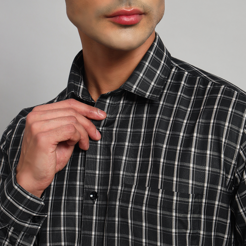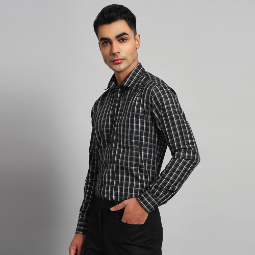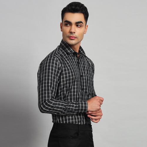 Skibery’s cotton checkered men black shirt